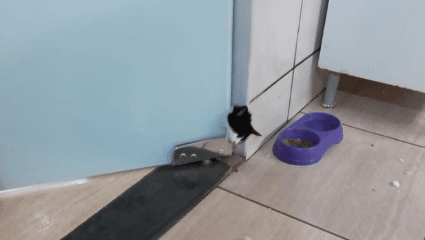 Corpo de Bombeiros resgata gato preso na fresta de porta
