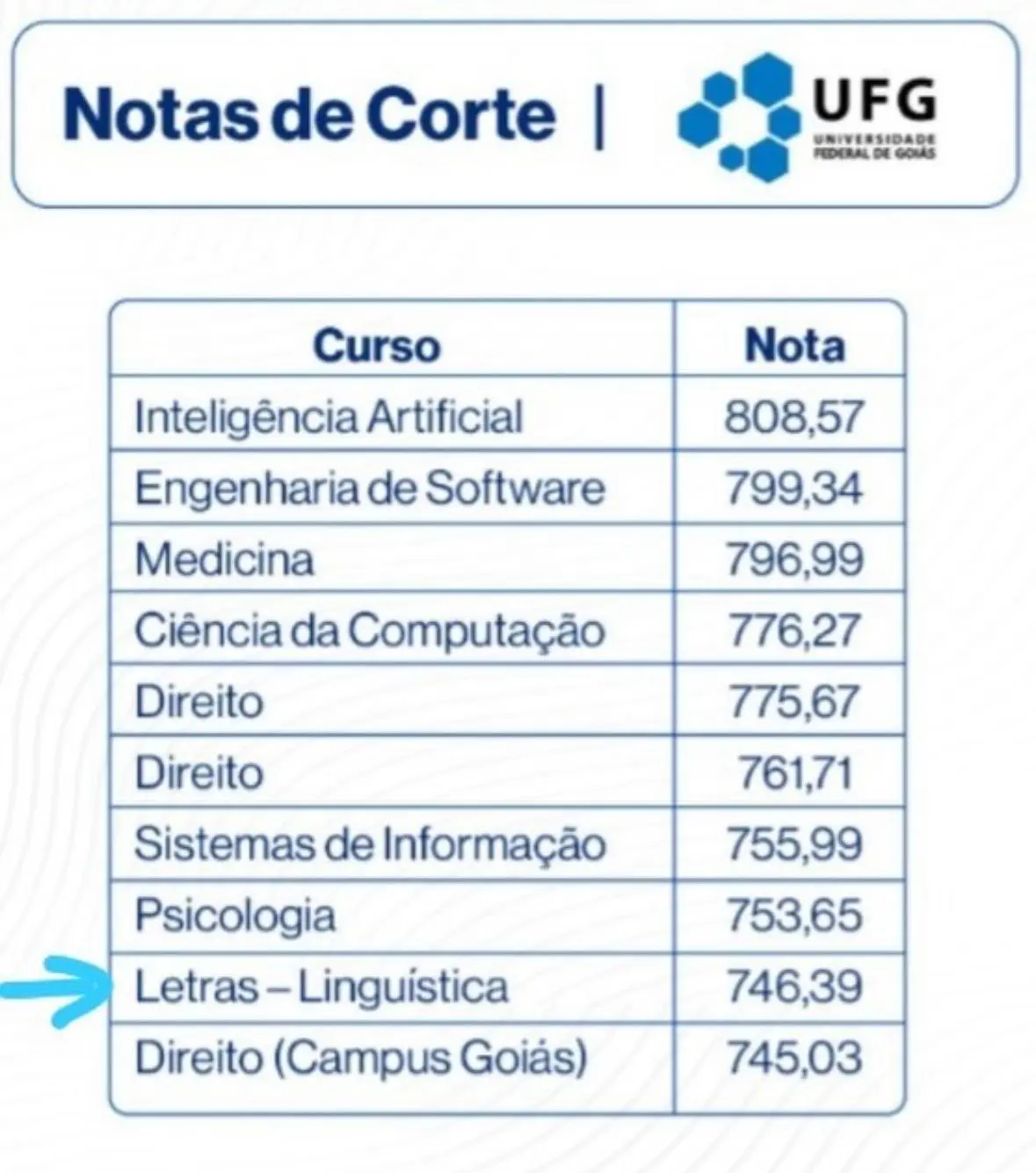 Uma publicação em suas redes sociais feita pelo professor e pesquisador, pós-doutor em Estudos de Linguagens e doutor em Letras e Linguística, Renato Dering, chamou atenção ao destacar o aumento da nota de corte para Letras/Linguística da Universidade Federal de Goiás (UFG).