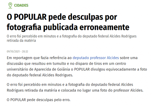 O jornal O popular foi um dos veículos publicou a foto errada. O veículo pediu desculpas pelo erro.