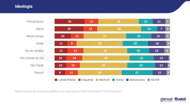 O governador do Paraná, Ratinho Júnior, aparece como opção viável para 14% dos entrevistados em Goiás, enquanto 54% não conhecem seu trabalho. Ao mesmo tempo, 32% dos ouvidos pela Genial/Quaest disseram conhecê-lo, mas não votariam nele.