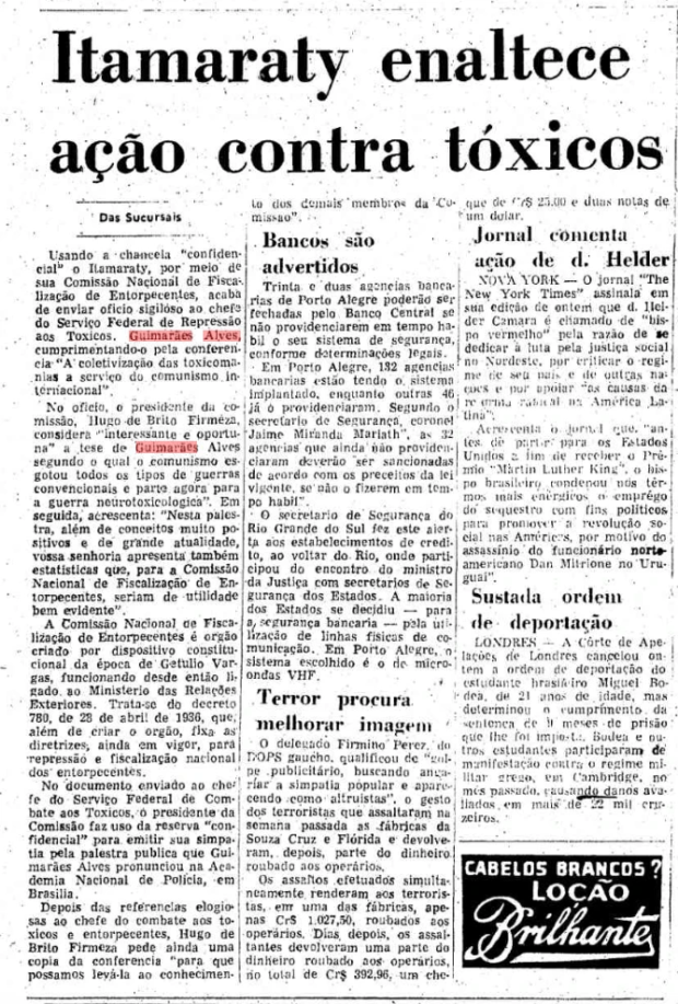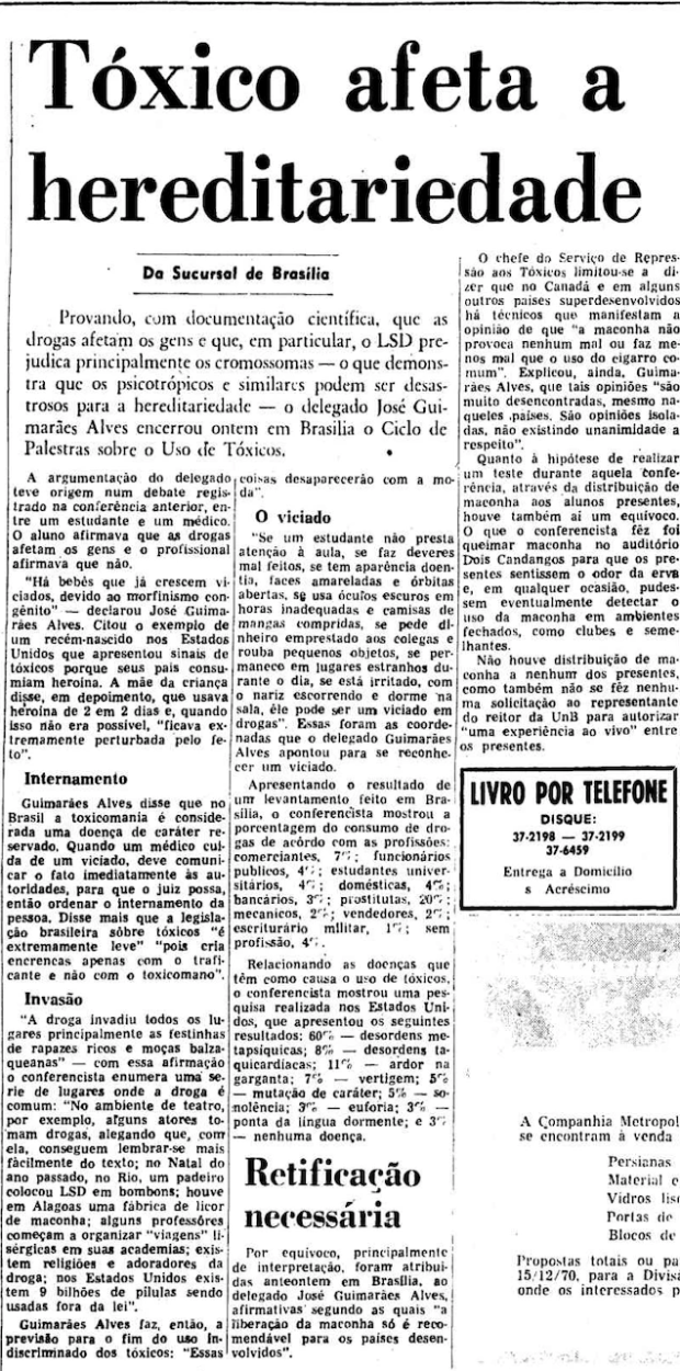 O chefe do setor responsável por drogas na PF à época, Guimarães Alves, reclamava publicamente da falta de preparo de policiais sobre o tema. “É lamentável a insipiência de nossos homens no tocante ao mínimo de conhecimento dos toxicômanos”, disse em notícia veiculada no Jornal do Brasil em maio de 1970.