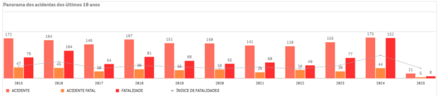 Em 41 dias (entre 1º de janeiro e 10 de fevereiro) de 2025, o Brasil registrou 21 acidentes aeronáuticos, que resultaram em oito mortes. Dois dos acidentes ocorreram em Goiás, conforme dados do Centro de Investigação e Prevenção de Acidentes Aeronáuticos (Cenipa).