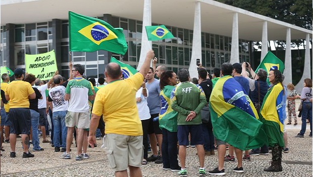 Reunindo cerca de 100 pessoas, de acordo com estimativa da Polícia Militar do Distrito Federal (PMDF), o ato foi organizado por meio redes sociais, pelo movimento Vem pra Rua em Brasília. Segundo apuração da Agência Brasil (EBC), a representante do movimento, Celina Gonçalves, considera a decisão do STF inadequada e disse temer que a tramitação desse tipo de crime na Justiça Eleitoral fique travada e que os atos prescrevam.