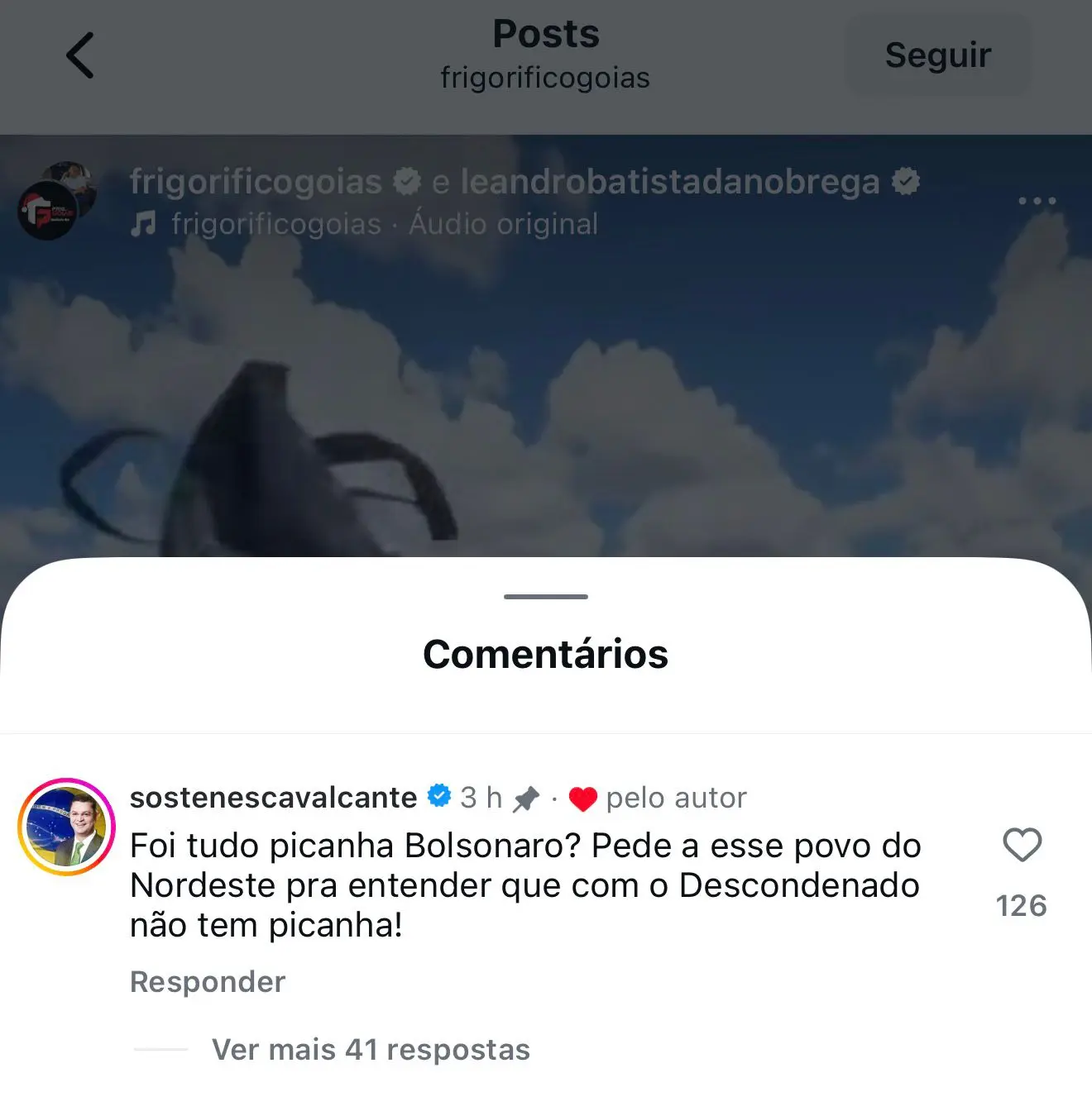 Em comentário publicado em uma postagem do Frigorífico Goiás sobre uma ação realizada pelo estabelecimento e que ganhou repercussão negativa, o deputado federal bolsonarista Sóstenes Cavalcante, do PL, que foi alvo recente de uma operação da Polícia Federal por suspeita de desvio de cota parlamentar, se referiu à população de Aparecida de Goiânia como “esse povo do Nordeste” e foi alvo de uma enxurrada de críticas.