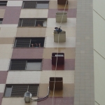 Em Goiânia, trabalhadores ficam pendurados em prédios durante limpeza de vidraças