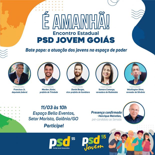 Além do próprio Meirelles, que segundo a organização, deve participar de painel como inspiração aos jovens, por ser o candidato às eleições majoritárias do partido, evento contará com a presença de ‘jovens lideranças’ do PSD e outros partidos. Entre eles, o deputado federal Francisco Jr., o prefeito de Trindade, Marden Júnior, o vice-prefeito de Itumbiara, Daniel Borges, a vereadora de Rubiataba, Samara Camargo, e o vereador de Silvânia, Washington Show.