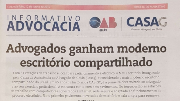Na última segunda-feira (12), foi lançado um suplemento de 8 páginas sobre a OAB-GO e a Casag, que foi enviado a escritórios de advocacia. No informativo publicitário é possível ver notas elogiosas sobre as duas instituições.