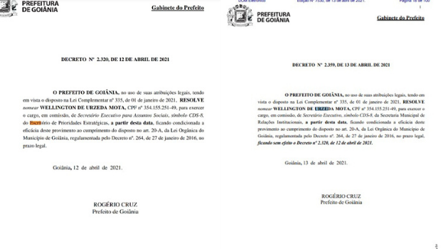 Ûrzeda realmente foi nomeado para o cargo do Escritório de Prioridades Estratégicas, mas foi realocado à Secretaria de Relações Institucionais de Goiânia, também para atuar como secretário executivo. Apesar de ambos os movimentos terem ocorrido no mesmo dia, enquanto a primeira nomeação saiu na edição do Diário Oficial de Goiânia na última segunda-feira, 12, a realocação foi publicada na terça-feira, 13.