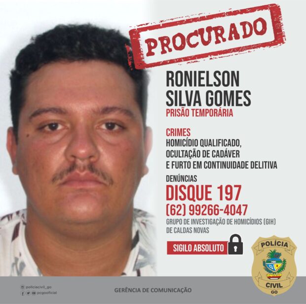 Um estelionatário de 28 anos é procurado por matar, queimar e abandonar o corpo de um mototaxista na zona rural de Caldas Novas. Depois do crime, Ronielson Silva Gomes ainda transferiu mais de R$ 21 mil das contas de Rafael Gomes Geraes, de 51 anos, utilizando o celular da vítima.