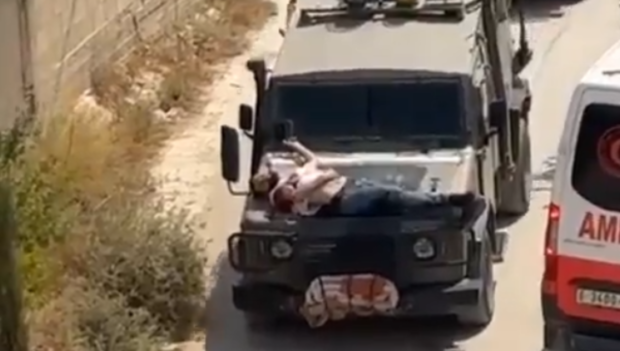 As Forças Armadas de Israel amarraram um homem palestino ferido ao capô de um jipe e o conduziram pelas ruas da cidade de Jenin, na Cisjordânia, conforme revela um vídeo que viralizou nas redes sociais neste sábado, 22. A autenticidade do vídeo foi confirmada pela agência de notícias Reuters.