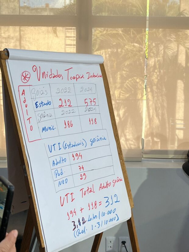 Dados apresentados por Rasível mostram a redução no número de leitos de UTI em Goiânia nos últimos anos. Em 2022, havia 186 leitos financiados pelo estado e município; em 2024, o número caiu para 118.