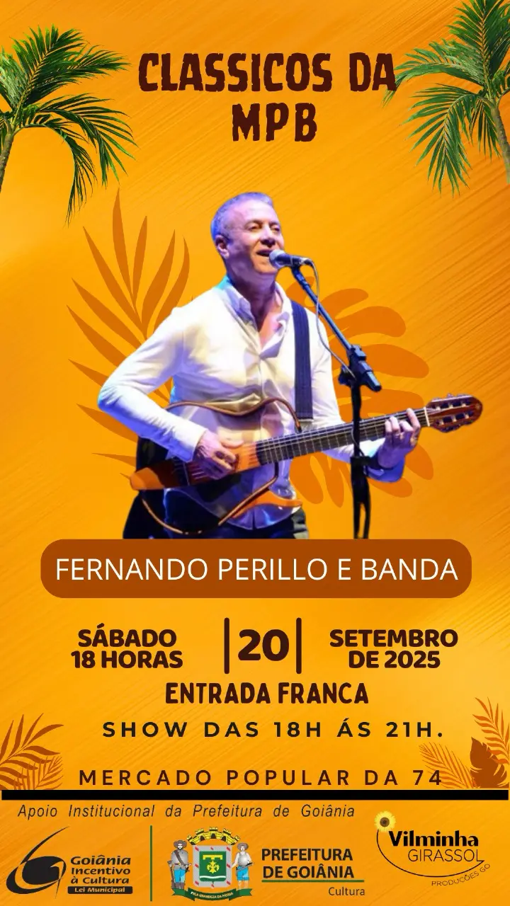 O cantor Fernando Perillo e sua banda vão apresentar clássicos da música popular brasileira no Centro Cultural Mercado Popular da 74, no próximo sábado, 20. A entrada do show é gratuita e começa às 18 horas.