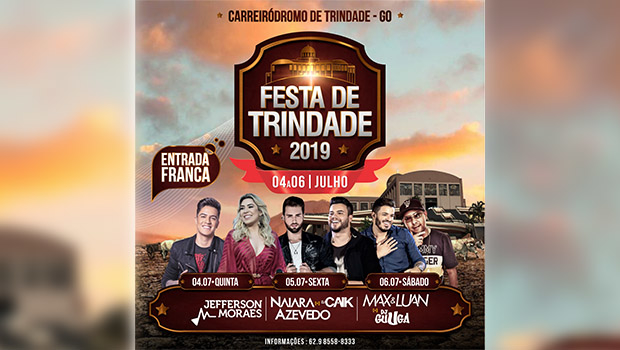 A Festa do Divino Pai Eterno 2019 conta, também, com atrações musicais durante o evento. Os shows se iniciam na quinta-feira, 4, no Carreiródromo de Trindade, sempre às 22h, com entrada gratuita.