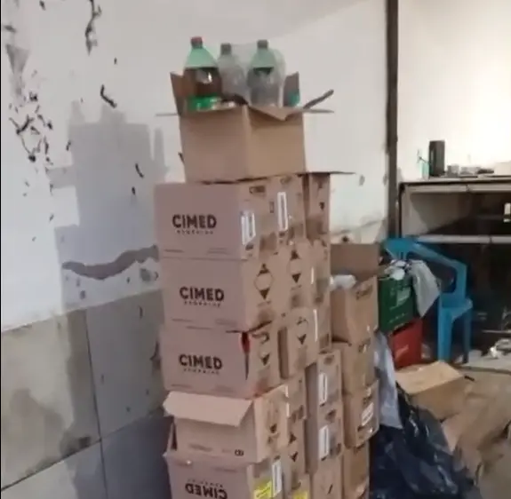 Entre os materiais recolhidos havia uma máquina específica para datação de produtos, usada para simular regularidade nas embalagens. A fiscalização constatou ainda condições sanitárias inadequadas, com presença de roedores, lixo acumulado e sujeira.