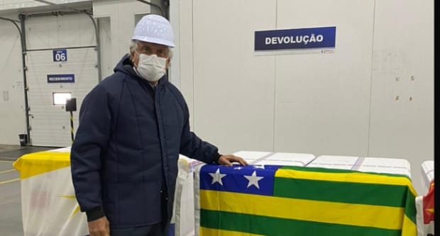 O governador esteve em São Paulo para solenidade de entrega dos imunizantes desenvolvidos pelo Butantan, em parceria com a farmacêutica chinesa Sinovac. Nesta primeira leva foram disponibilizadas 87.172 doses de vacina capazes de imunizar 43.586 pessoas do público-alvo. Caiado informou que metade serão poupadas para a segunda dose a ser ministrada de 14 a 28 dias.