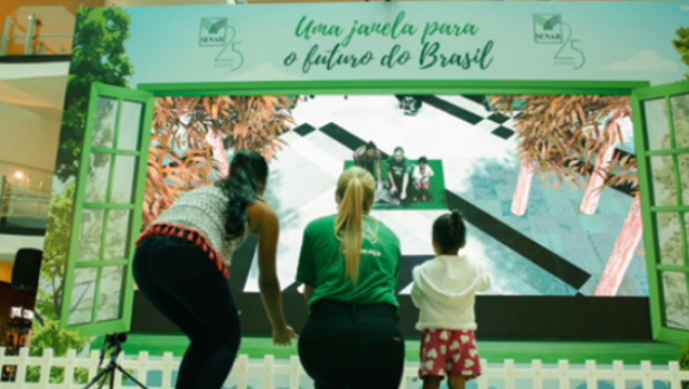 O Serviço Nacional de Aprendizagem Rural (Senar) realiza, no shopping Flamboyant, uma ação que permite maior contato das pessoas com o campo por meio de realidade aumentada, principalmente daqueles que não estão familiarizados com a “roça”.