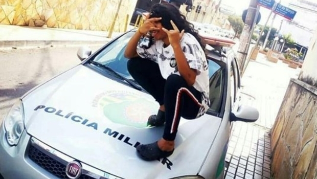 Foto de adolescente fazendo pose em cima de carro da PM causa polêmica em Anápolis