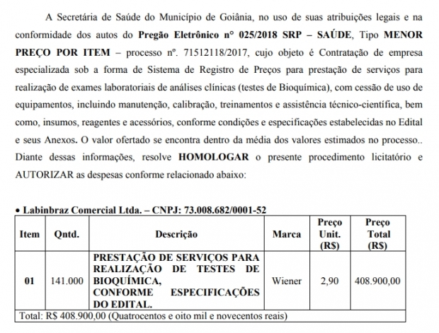 Labinbraz Comercial LTDA venceu o pregão eletrônico pelo menor preço. Mesmo assim, prefeitura vai gastar R$ 80 mil a mais para realização de exames