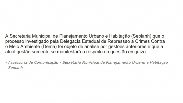 Por meio de nota, assessoria de comunicação da Seplanh disse apenas que irá se manifestar sobre o assunto na Justiça