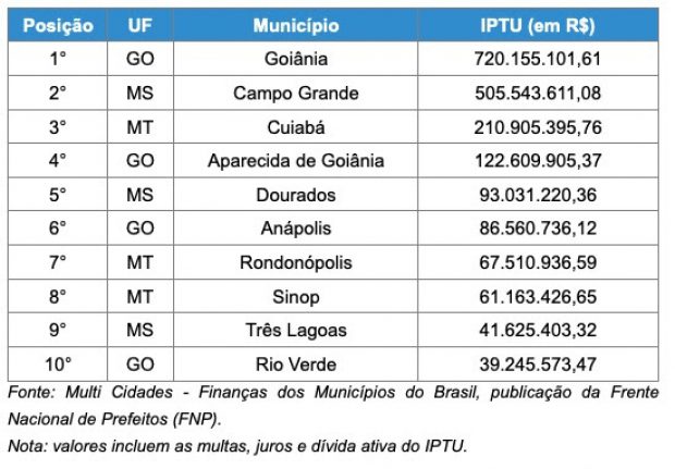 O levantamento do anuário Multi Cidades: Finanças dos Municípios do Brasil aponta a arrecadação do conjunto das cidades do Centro-Oeste com o Imposto Predial e Territorial Urbano (IPTU) e detalha os dados das sete mais populosas de cada estado da região em 2020. A publicação foi idealizada pela Frente Nacional de Prefeitos (FNP), com patrocínio da Huawei e da Tecno It.
