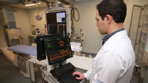 Um destes recursos é a Tomografia de Coerência Óptica (TCO). Realizada durante o procedimento de cateterismo, ela obtém imagem de alto grau de resolução, e é capaz de avaliar mais de mil pontos simultaneamente dentro das artérias coronárias. “A imagem é muito superior a de outras máquinas. Apresenta uma resolução de 90%, o que representa 10 vezes mais qualidade que o aparelho de ultrassom, por exemplo”, explica o diretor técnico do HCGO, Dr. José Silvério.