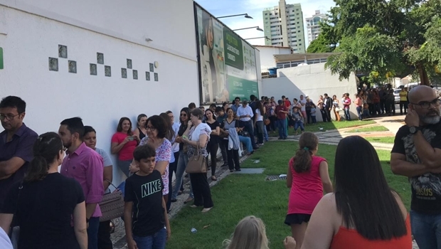 Com o atraso da campanha de vacinação contra gripe H1N1 em Goiás, dezenas de pessoas procuraram clínicas particulares em busca da vacina na manhã desta terça-feira em Goiânia. Na imagem, a fila se estendia pela calçada em frente ao centro de vacinação da Unimed, no setor Aeroporto.