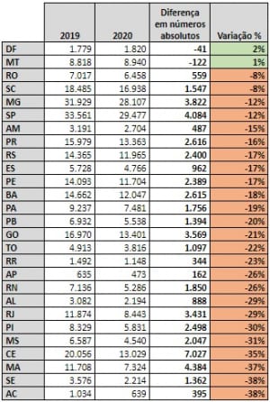 Com a queda nas ocorrências, se espera que 229.646 vítimas de acidentes sejam indenizadas pelo seguro neste ano. Dados do Departamento de Informática do Sistema Único de Saúde (DataSUS) mostram que a média de mortes por acidentes no Brasil é de 30 mil por ano.