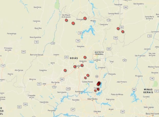 Os tremores registrados em Goiás são fracos e na maioria das vezes imperceptíveis. Apesar da concentração maior na região Norte, há também registros de terremotos em Itumbiara, Rio Verde e Catalão, na região Sul do estado. O registro mais forte deste ano foi de 3,1 na escala Richter que aconteceu na cidade de Trombas, próximo à divisa com Tocantins.