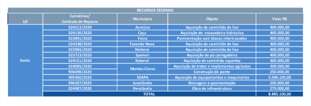 Goiás recebe R$ 8,8 milhões para aquisição de equipamentos e realização de obras