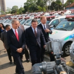 Acompanhados pelo secretário de Segurança Pública e Administração Penitenciária, Ricardo Balestreri, o governador Marconi Perillo (PSDB) e o vice-governador José Eliton (PSDB) entregaram na manhã desta sexta-feira (29/9) 273 novos veículos para as forças policiais. E