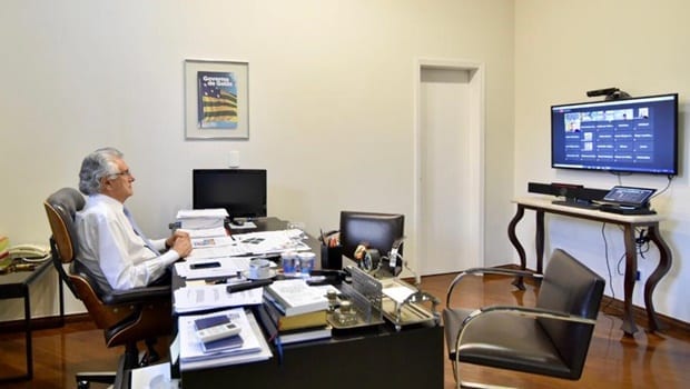 O governador de Goiás, Ronaldo Caiado, e a secretária da Economia, Cristiane Schmidt, entregaram na tarde da última quinta-feira, 21, o Balanço Geral do Estado (BGE) do Exercício de 2019 ao presidente do Tribunal de Contas do Estado de Goiás (TCE), conselheiro Celmar Rech. A solenidade de entrega foi virtual, devido às restrições do período de pandemia do coronavírus.