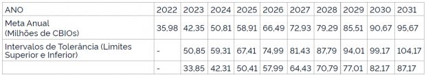 No despacho, são definidos intervalos de tolerância em Crédito de Descarbonização (CBIO), um ativo emitido por empresas licenciadas em que cada tonelada de CO2 evitada representa um crédito. Este cálculo é feito a partir da diferença entre a emissão dos gases decorrentes de biocombustíveis, como o biodiesel e o etanol.