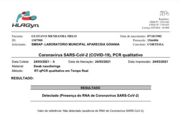 O prefeito de Aparecida de Goiânia, Gustavo Mendanha (MDB), realizou novamente o teste RT-PCR para Covid-19 e o resultado foi positivo, segundo publicado por ele no Twitter nesta quarta-feira, 24.