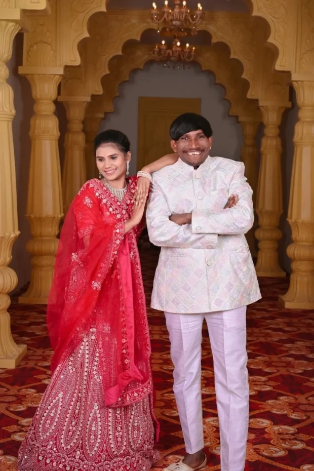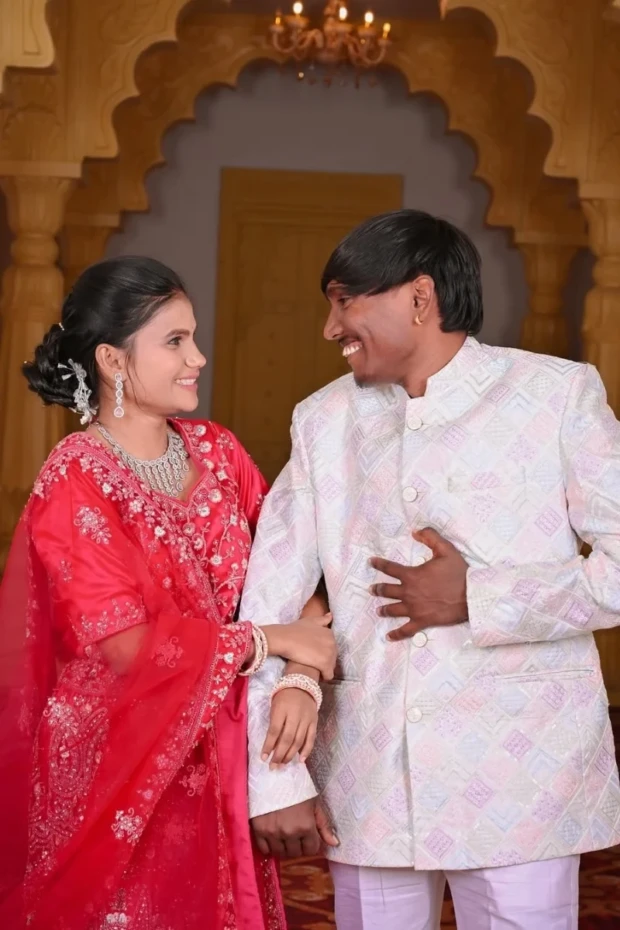 Suraj foi o vencedor da 5ª temporada do Bigg Boss Marathi e seguiu as tradições hindus, usando trajes étnicos. Já Sanjana vestia um sari navari tradicional, joias douradas e um penteado adornado com rosas vermelhas. Em alguns registros, o homem mais bonito da Índia se mostrou extremamente animado nas fotos ao lado da noiva.