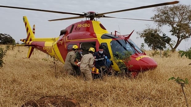 E helicóptero do Corpo de Bombeiros resgatou, na manhã deste sábado, 22, um homem de 56 anos que foi agredido com golpes de faca, no Residencial Buena Vista, em Goiânia.