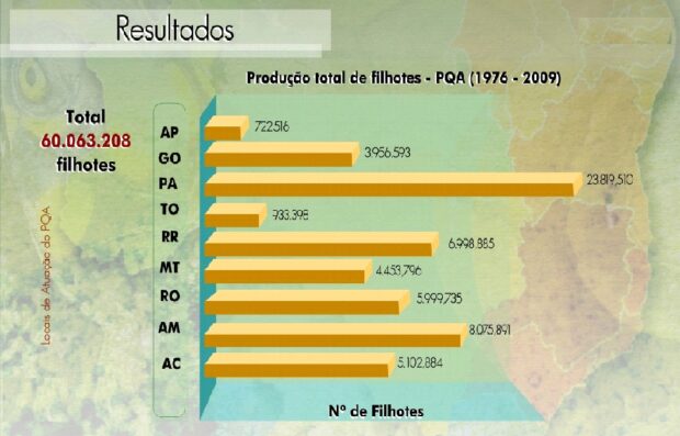 O Programa Quelônios da Amazônia (PQA), executado há 44 anos pelo Ibama (Instituto Brasileiro do Meio Ambiente e dos Recursos Naturais Renováveis), trabalha para proteger áreas de desova das tartarugas-da-amazônia no Rio Araguaia, em Goiás. Os fiscais, anualmente, atuam na marcação, monitoramento, contabilização e proteção dos filhotes.