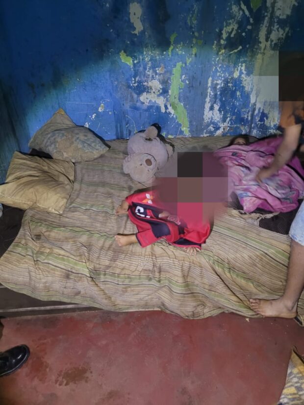 Nas fotos abaixo, é possível perceber o estado crítico em que se encontravam as crianças e a casa. As imagens mostram as vítimas em colchões, ou até mesmo deitadas no chão.