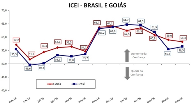 Conforme o relatório da Fieg, com início em maio de 2018, o quinto mês do ano passado registrou Icei de 57,2, 1,1 menor que o mesmo período deste ano. Mês a mês se observou os seguintes dados: junho, 51,7; julho, 54,4; agosto, 56,1; setembro, 56,5; outubro, 54,7; novembro, 63,7; dezembro, 64,1; janeiro, 62,5; fevereiro, 63,5; março, 60,9; e abril, 59,0.