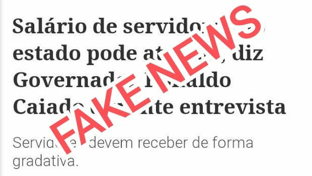 Circula nas redes sociais e aplicativos de mensagens a informação de que o governador Ronaldo Caiado (DEM) teria dito em entrevista que salário dos servidores do estado de Goiás poderia atrasar e que poderiam receber de forma gradativa. No entanto, a mensagem é falsa.