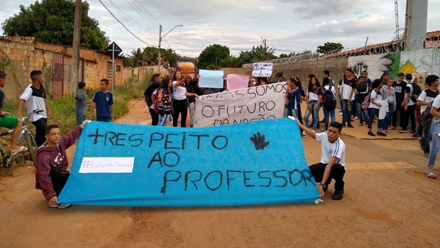 Os alunos do Colégio Estadual Epaminondas Roriz, em Luziânia, organizaram manifestação em solidariedade aos profissionais da educação que estão sem receber o salario de dezembro.