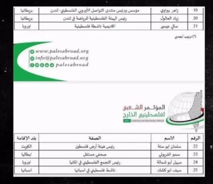 Outro documento apresenta uma lista de membros da PCPA que ocupam cargos de destaque no grupo terrorista palestino. Entre eles estão Zaher Birawi, líder do Hamas e da Irmandade Muçulmana no Reino Unido e principal articulador das flotilhas que tentam furar o bloqueio israelense nos últimos quinze anos, e Saif Abu Kashk, residente em Barcelona, na Espanha, responsável por organizar a flotilha de Greta Thunberg. Os barcos zarparam do porto da cidaade catalã.