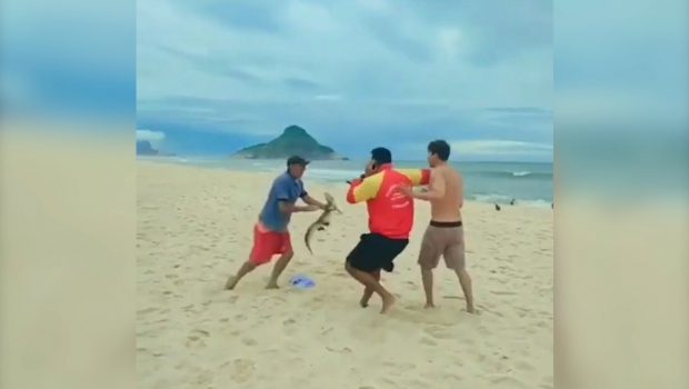 Jacaré é usado como arma durante briga em praia do Rio de Janeiro; Veja vídeo