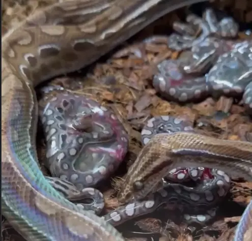 Jiboia-arco-íris surpreende ao demonstrar cuidado com os filhotes; assista