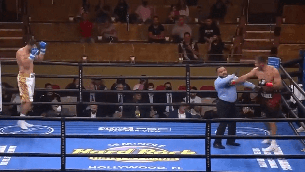 Lutador de boxe soca árbitro do combate – Veja vídeo