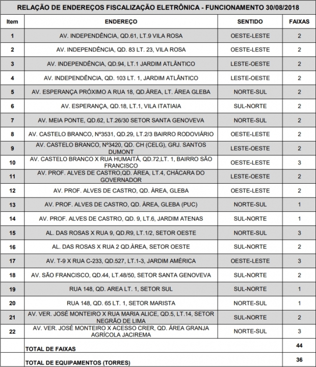 Nos primeiros 10 dias, os fotossensores não aplicarão multa, funcionando apenas em caráter educativo. Com os novos equipamentos, já são 362 faixas fiscalizadas em Goiânia. A expectativa da SMT é de expandir a fiscalização para 643 faixas até o final do ano.