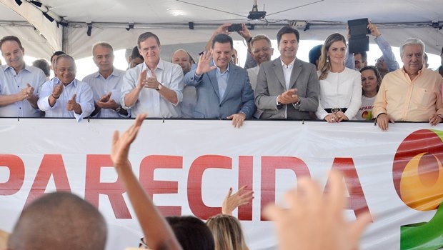 Marconi Perillo e Antônio Gomide se encontram em comemoração de aniversário de Aparecida de Goiânia