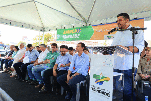O prefeito de Trindade, Marden (UB), apresentou, nesta terça-feira, 10, as obras onde serão investidos mais de R$ 48 milhões por meio do programa Avança Trindade. Durante o evento, o chefe do executivo municipal também assinou a ordem de serviço para a construção de duas novas Unidades Básicas de Saúde (UBS), sendo uma no setor Maysa, na Região Leste, e outra no Residencial Marise, na Região Central, além da construção de uma Escola Municipal no Solar Embaúbas.