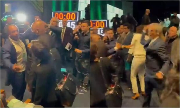 Datena se aproximou do púlpito de Marçal e bateu nele com uma cadeira após ser provocado pelo rival. O apresentador foi expulso do evento.
