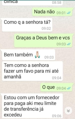 O golpe é simples, mas ousado. Os criminosos virtuais conseguem usar um número de celular novo, copiam fotos de redes sociais de médicos e se passam por eles. Assim, o golpista entra em contato com alguém da família, troca algumas mensagens para adquirir confiança e então pede para que seja feito um depósito para pagar um fornecedor ou para custear uma despesa.