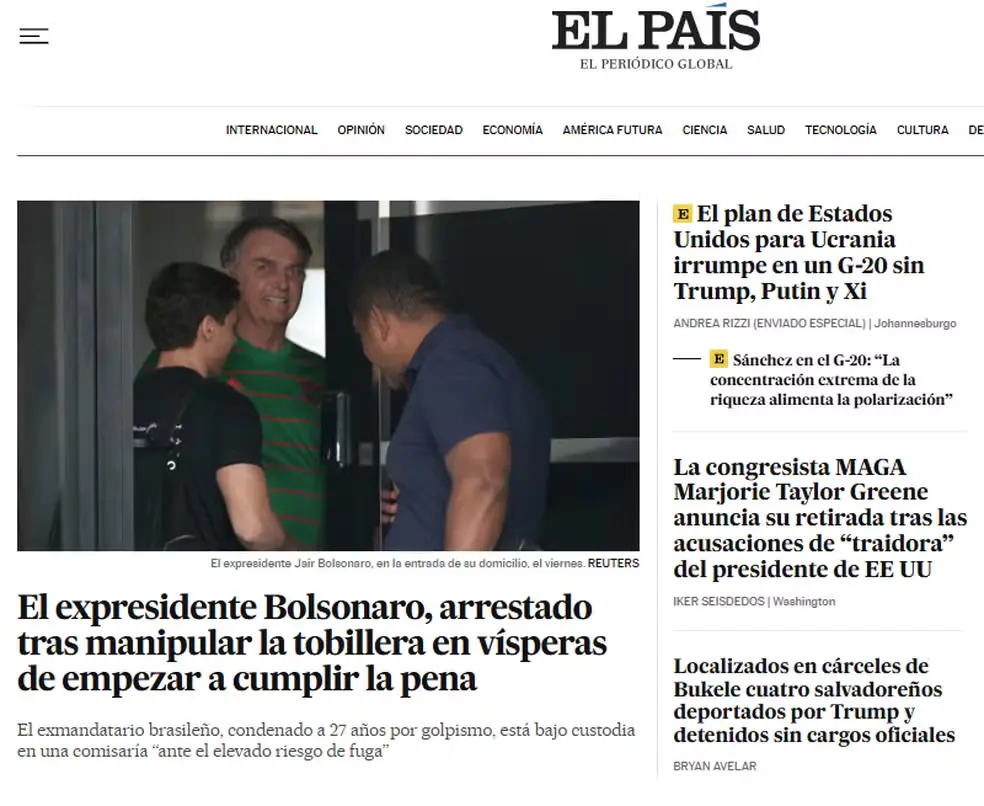 Veículos europeus e norte-americanos deram destaque imediato ao caso. O The New York Times afirmou que a prisão representa “um novo capítulo na turbulência política brasileira”, ressaltando que Bolsonaro já enfrentava uma série de processos relacionados às eleições de 2022 e à pandemia de Covid-19.